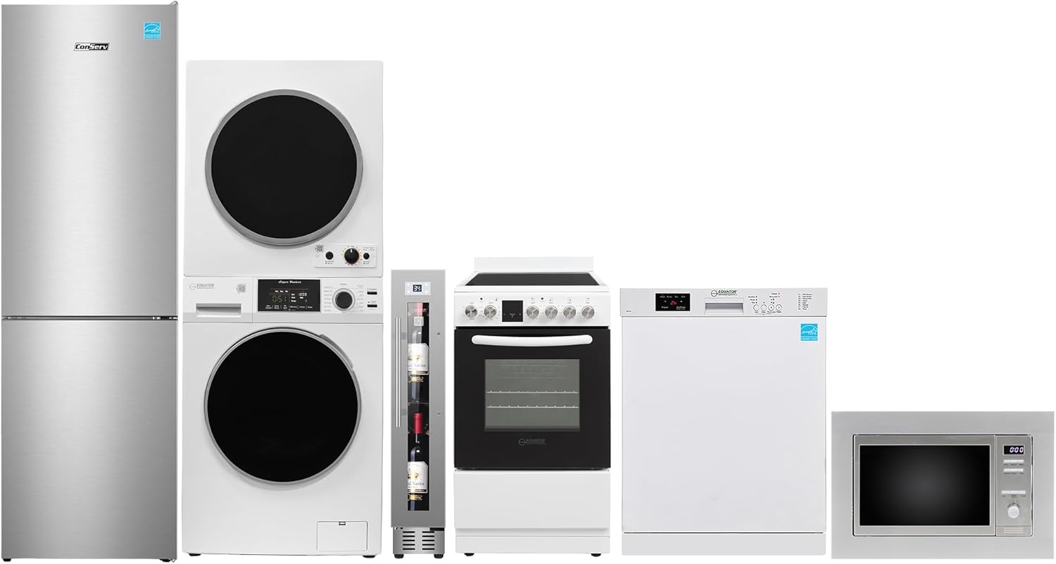 Equator Advanced Appliances SMALL HOME 800 SQ. FT APPLIANCE PACK- WasherDryerDishwasherCooking RangeRefrigeratorMicrowaveWine Ref